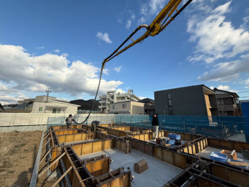 配筋検査後は、まずベース部分のコンクリート打設を行いました。