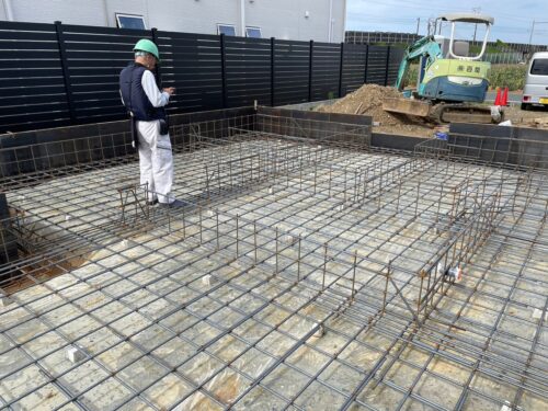 基礎の鉄筋が正しく配置されているか、本数に間違いはないか、ずれはないか、といった点を